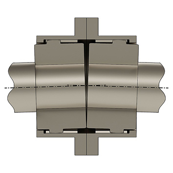 A significant quality feature of the new GH-shaft couplings from RINGSPANN is the special geometry of the engagement gearing. Because contrary to what you might expect, it is fully crowned. This means that the tooth tips are rounded and the tooth flanks are chamfered at the upper edge and spherical over their entire surface. This special design gives the GH engagement gearing a high torque capacity and extends its service life. RINGSPANN product manager Martin Schneweis goes into detail here: "The rounded tooth tips avoid edge pressures, which are typical in radial and angular misalignments, but allow the coupling sleeve to be guided radially with high precision. The completely spherical tooth flank surface also prevents such edge pressures at the tooth ends, which offers more leeway in compensating for larger radial and angular misalignments. The crowned flanks also improve the contact between the gearing of the hub and the sleeve of the coupling, which increases the load-bearing capacity of the shaft coupling and reduces wear due to the possibility of better lubrication in the tooth contact. Finally, the chamfered tooth flanks at the transition to the tooth tips prevent undercuts at the tooth feet of the sleeve toothing."