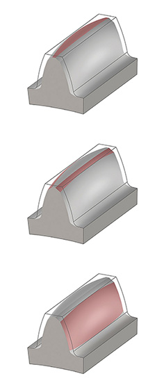 A quality feature of the new GH shaft couplings from RINGSPANN is the completely crowned gearing. Top down: rounded tooth tips, chamfered tooth flanks, crowned tooth flanks. Image: RINGSPANN